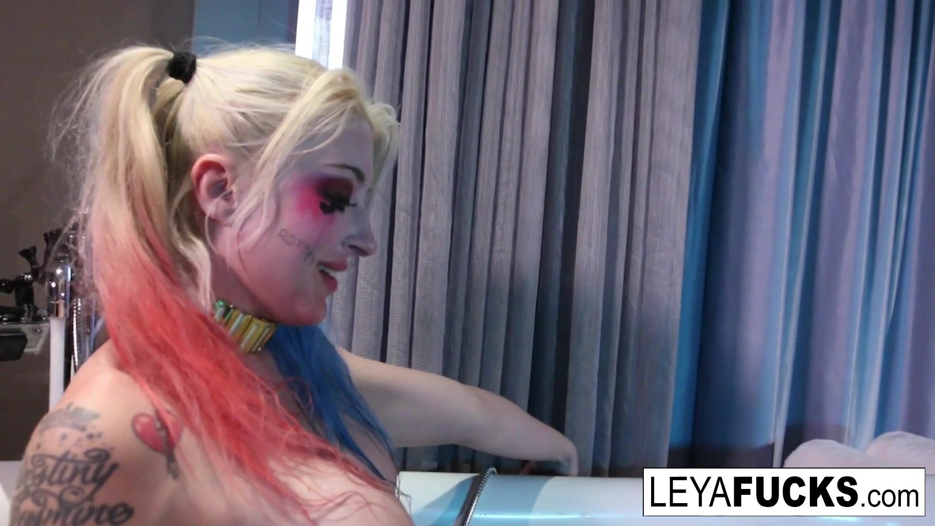 Leya Falcon uses the tub shower head on her ass