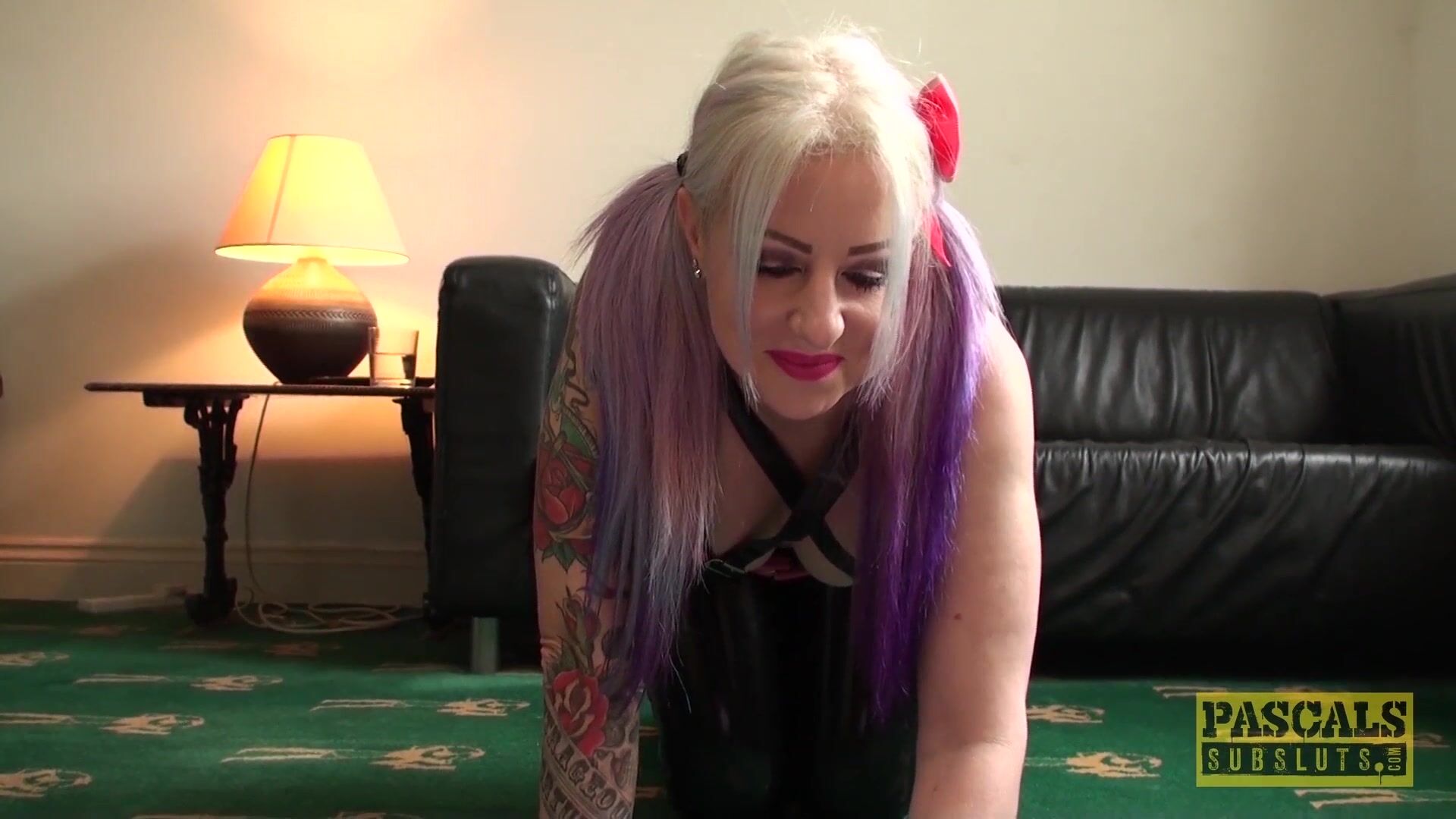 Inked subslut dominated and fed with master Pascals cum